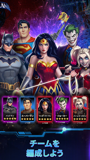 チームを強化し、DCユニバースの仲間たちと力を合わせましょう。協力して不正と戦い、敵や ボスを倒し、期間限定イベントで豪華な報酬を手に入れましょう。バットマン、スーパーマ ン、ブルービートル、ワンダーウーマン、ジョーカー、アクアマン、フラッシュを含むすべて のDCコミックスのヒーローとヴィランたちは、アップグレードでさらに強化することができます。