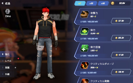 武器、味方、コスチューム、コア、レベルアップなど様々な成長要素を体験。