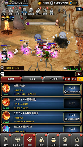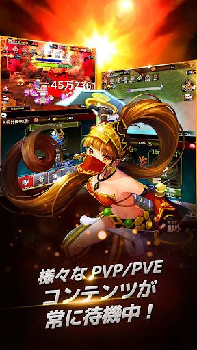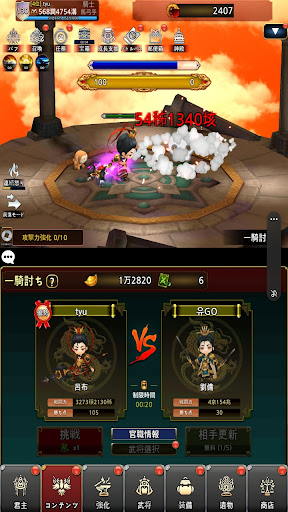 君主/武将/昇級/超越/装備/四神獣/遺物など多くの成長要素