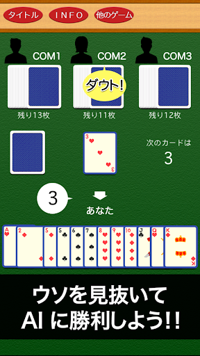 ・自分が出すべきカードを持っていない時は、嘘をついて他のカードを出すことになります。