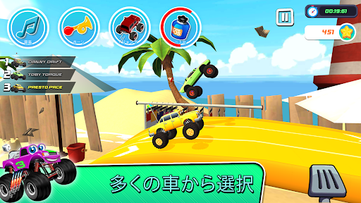 24カ所で50レベル、常にたくさん追加されている40台以上のモンスタートラックから選ぶことで、お子様は長時間ゲームを楽しむことができます!