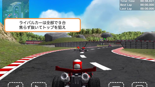 遊園地などにあるゴーカート、楽しいですよね。 カートレースはモータースポーツの最初の一歩。その雰囲気をアプリで体験しましょう。 ライバルカーは全部で9台。ぶつかってもマシンが壊れることはありません。 速く走るコツはズバリ3つだ。 ・ライバルカーにぶつけない ・ハンドルボタンを長押しせずに、ちょんちょんと押す ・ドライバー視点のカメラで走る コースは全部で3種類。さぁサーキットへ出かけよう。