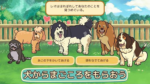 ● あなたのストーリーを選ぶ - 老犬ホームで暮らす犬たちとのストーリーで、いろんな体験を選択していきましょう。犬たちから“まごころ”をもらうと、新しい犬やストーリーをアンロックできます。