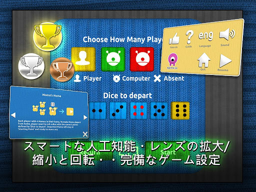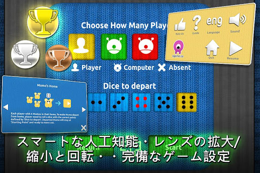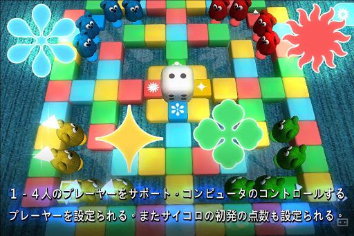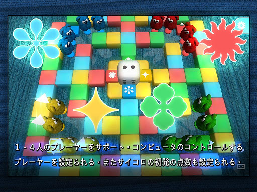 - 1-4人のプレーヤーをサポート。コンピュータのコントロールするプレーヤーを設定られる。サイコロの初発の点数が設定られる。