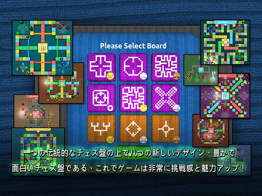 - 一つの伝統的なチェス盤の他にも、八つの革新なチェス盤もあり、全部豊かで面白いである。珍しくてユニックな遊び経験を与える。
