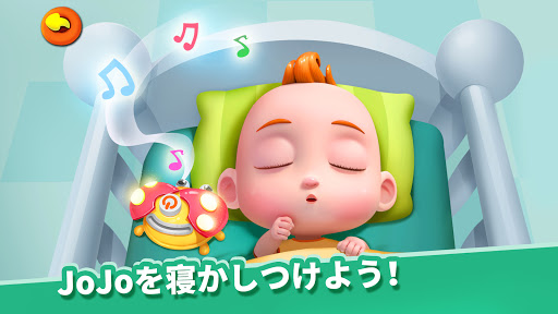 JoJoのお風呂の時間だよ!マジックテープを取って、おむつを脱がせてあげて。JoJoに石鹸を塗り、軽くこすってきれいにしてあげて!9時だよ。JoJoはまだ寝ていないの?JoJoにふとんをかけて、子守歌を流してあげて、聞き終わるころには寝ているから!シー、JoJoは寝ているよ。JoJoのお世話、本当に上手だね!