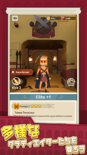戦闘管理タイプの暇つぶしモバイルゲームの背景は古代ローマ時代で、剣闘士の訓練を受けたプレイヤーは、ローマ貴族を演じながら戦闘に参加する剣闘士の募集と訓練を実行。リソースを獲得し訓練内容を強化するために、プレイヤーは古代ローマの剣闘士について学ぶ。