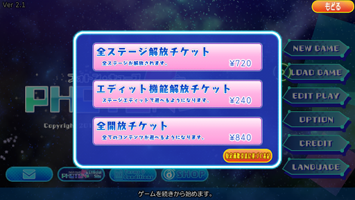 ・『全ステージの解放』『ステージエディット』が遊べるようになります。