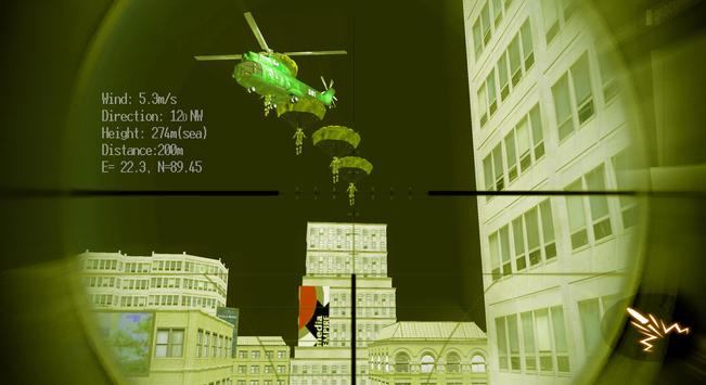 The helicopter will take you to your mission site along with your spotter comrade, you two will journey together into the heart of the enemy territory! You say your good byes because these missions are neigh impossible! As a sniper shooter, you take up your position on high ground. Let the spotter serve as your eyes and ears, he gives you the location of the next target! Be quick to send them to their graves because the spotter is exposed the moment he tells you the location of the enemies! Missing the shot will sound the alarm and your position will be exposed, so get ready for a full out attack, something you can't bear!