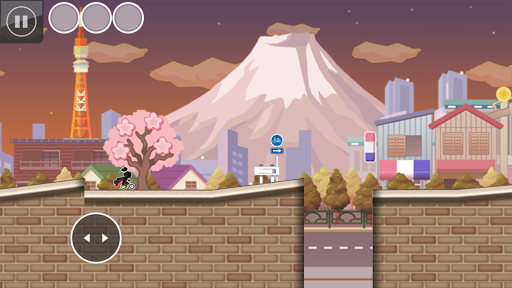 「ハンドル機能」がスマホに初登場! 左右スティックを動かしジャンプ中にチャリを左右に移動させて着地点を調整しよう!腕自慢はハンドルを使わないでステージをクリアして「王冠」をゲットしよう!