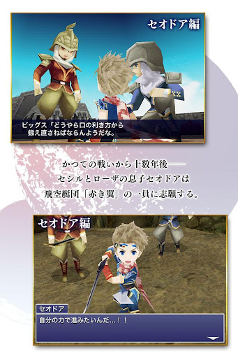 かつての戦いが終わりを告げ、セシルとローザの間にはセオドアという息子が生まれた。物語はそのセオドアが飛空艇団「赤き翼」に志願し一人前となる試練に向かうところから始まる。 空には再びもう一つの月があらわれ、魔物たちが動き出す。平穏を取り戻した青き星に、新たなる異変が迫りつつあった。
