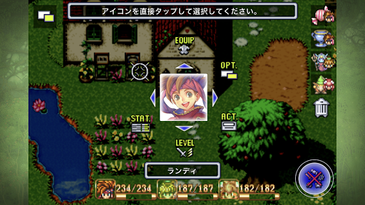 『聖剣』シリーズの特徴的なシステムの1つが「リングコマンド」。ボタンを押すとメニューが画面にリング型で表示され、画面を切り替えずにアイテムを使ったり、武器を変えたりできる、便利なシステムです。このリングコマンドは『聖剣伝説2』で初めて登場し、後のシリーズにも受け継がれていきました。
