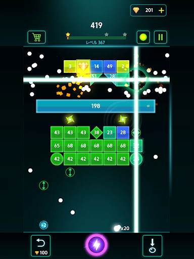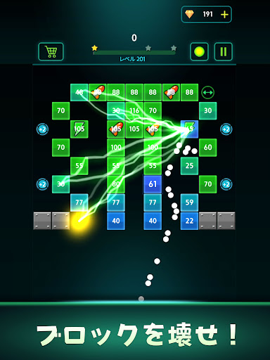 2.ボールコントロール:ボールをスワイプして発射し、レンガを壊します。