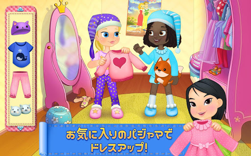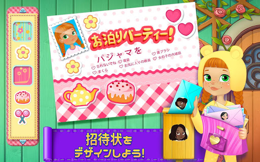 まくら投げで大騒ぎ!親友にまくらを投げて爆発させて、最高に楽しんじゃおう!夢のお泊りパーティーの計画を立てよう!招待状をデコって、パジャマをデザインして、おいしいパンケーキを作って、キャンディ探しで遊んで、その他にもいろいろ!
