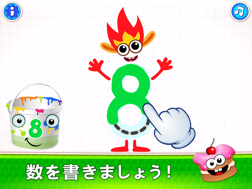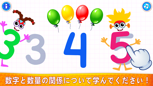 小さな数字のキャラクターと遊びながら、お子様は数字とその書き方を学ぶでしょう。そして、数え方、数字と数量の関係を学ぶでしょう。