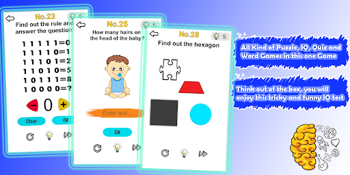プレイ中に箱から出して考えると、あなたはだまされ、いくつかのレベルは簡単な答えを持っており、いくつかは簡単な答えを持っていません。ロジックは、そのクイズのすべてを解決するために必要とされます。