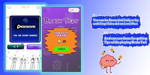 新しい脳テストのレベルは数独パズル、単語ゲーム、クイズゲーム、単語検索ゲーム、トリビアゲーム、IQテストとEQテストが含まれています。