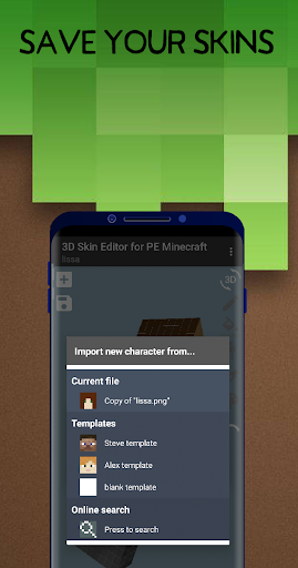 You can draw a skin from scratch or pick the pre-customized skin, the app allows editing of the existing skins of your Minecraft username or gallery. It features advanced tools to create the perfect skin, such as an eraser, paintbrush, and bucket. As the name suggests, it’s a 3D editor so your skins can be as high quality as any skin made on a PC, and it allows you to export your creations to Minecraft. It has simple layout and easy to find tools.