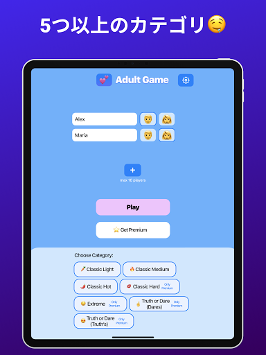 真実か挑戦かは7つの難易度に分けられます。 レベル間の完璧なバランスを見つけます-目的のレベルをオンまたはオフにします。 あなたは一度にすべてを選ぶことができます!