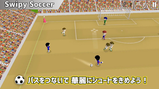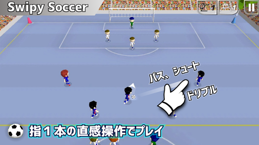 サッカーフィールドに線を描くように、指先を滑らせると、その方向へその強さのパスやシュートができます(浮き球も蹴れる)。また、選手を「ひっぱり」操作すると、軽やかにドリブルします。