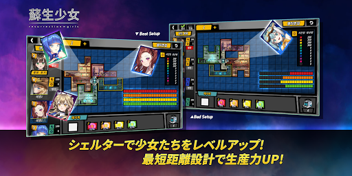 様々なルームを配置し、少女を生産してアップグレードさせてください。