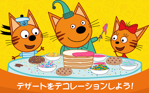 子ネコたちは、腹ペコです! 変わった材料から、イチバン美味しいおかゆを作って、ネコたち全員にご馳走してあげてね! デザートにクッキーとケーキをだそう!料理を作るゲーム 猫のゲーム!アニメKid-E-Catsのキャラクターと一緒の”子猫クッキングショー”へようこそ!