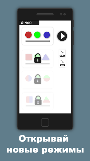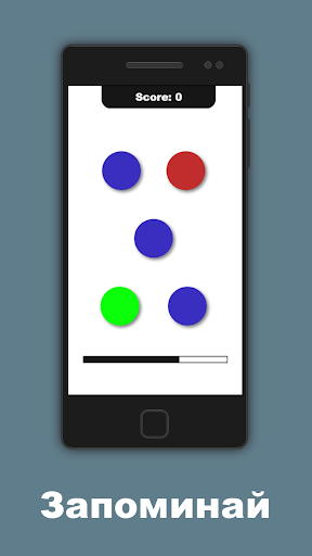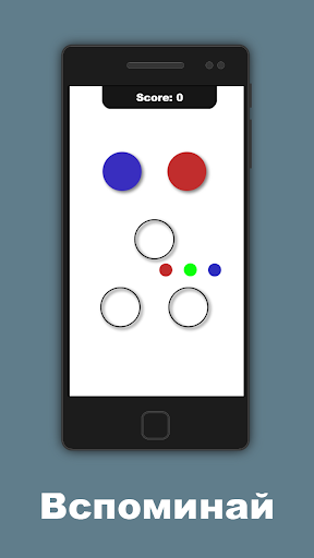 あなたは自分の色を暗記するための5つのサークルと時間を与えられます。時間の終了後、あなたは覚えており、マグカップに必要な色を置く必要があります。あなたがすべてを正しくしたならば、同じことが繰り返されますが、あなたはより少ない時間を持っています。正しい色を置くことができなかったら、メニューを渡ります。