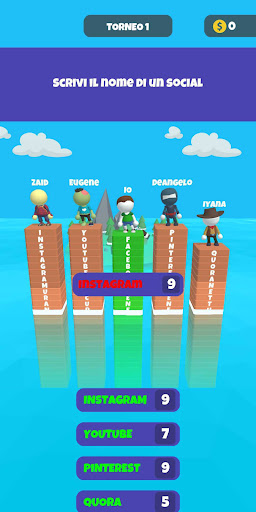 最長の対応が勝ちます!あなたのタワーを建設し、水の上昇水を脱出することを心にやってくる最長の答えですべての質問に答えてください。 対戦相手を生き残ることができる限り、あなたは食べないでしょう!
