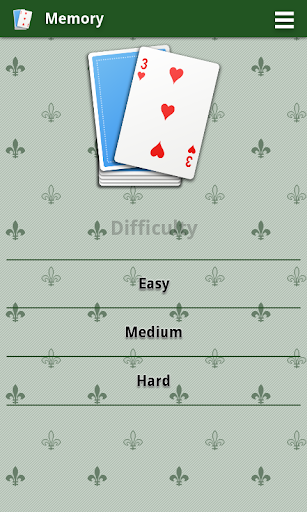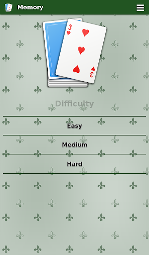 3つのレベルの難易度をサポートします:簡単、中、難しい。それぞれ4,9、および16枚のカードで。
