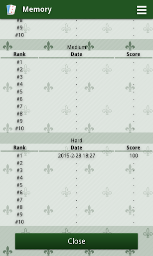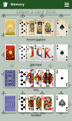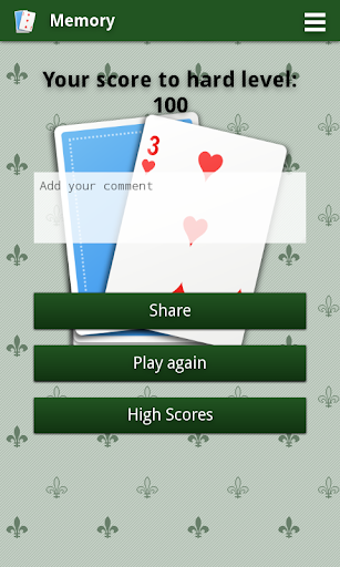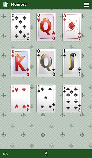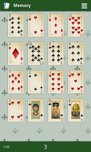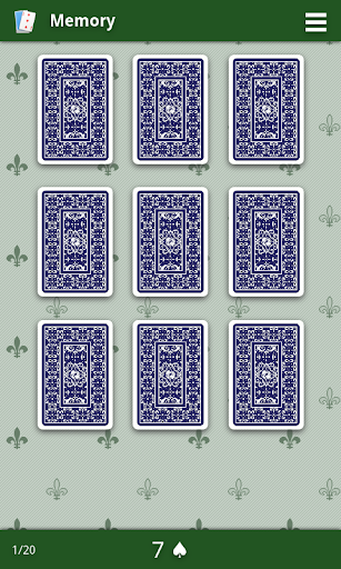 このゲームであなたの記憶を訓練する。カードを見て、場所を覚えています。このゲームは常にランダムにシャッフルされたフランスのカードを使用しています、そしてあなたはカードを見るための設定時間を持っています。ゲームを終了し、ソーシャルネットワーク上で公開できるスコアを発見してください。