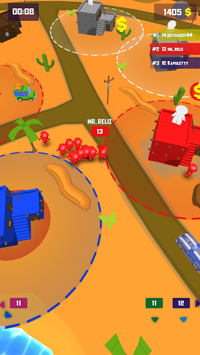 A three-dimensional arcade game in which the player will control a crowd of colored people. The main goal of each session is to destroy enemy units, for this you need to capture buildings. Buildings will increase the size of your crowd, which will increase the chances of a successful battle. In the process of moving around the locations, you should avoid enemy units with a larger number, as they have a higher probability of victory. Also, the user will be able to improve buildings and their units, which will make them more deadly.