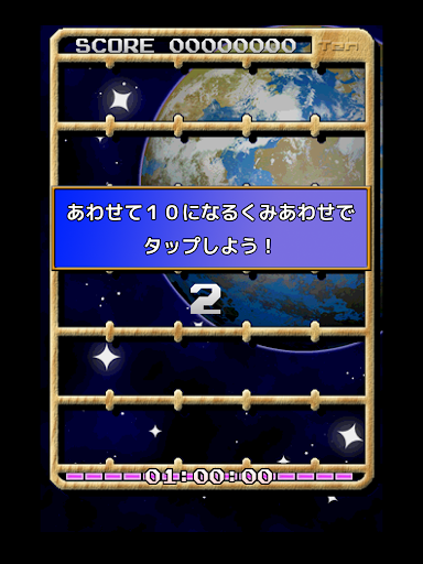 『TEN-10-』は、 画面内にある1~9の数字が書かれたピースの中から、「合わせて10になる1ペア」を選び次々にタッチしていき、制限時間内にどれだけ多くのピースを消せるかにチャレンジするパズルゲームです。高得点にチャレンジしましょう!