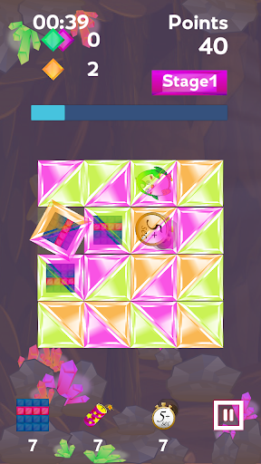 上から落ちてくる、3角形が2つ組み合わさった4角形パネルの色を組みあわせて、同じ色のひし形を作って消していくパズルゲームです。