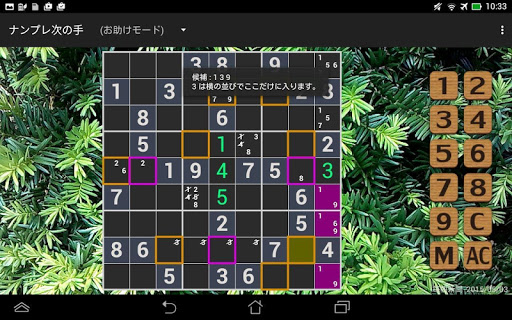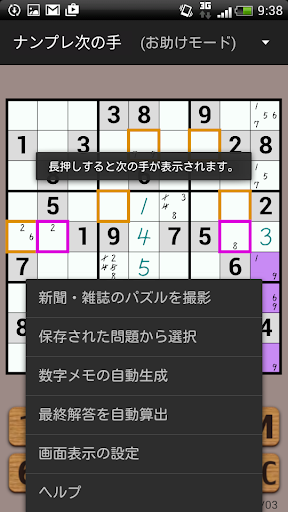 初心者の方には、次にどのマスに注目すべきかを教えてくれる機能があり、途中であきらめないで、ナンプレを楽しめるようになっています。