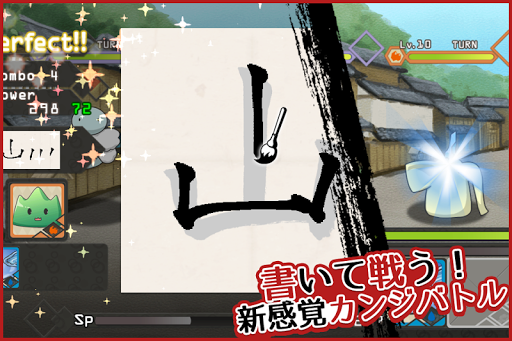 画面に表示された半紙に漢字を書くと仲間のカンジがパワーアップ