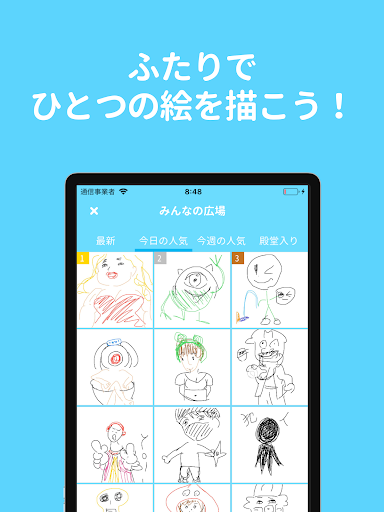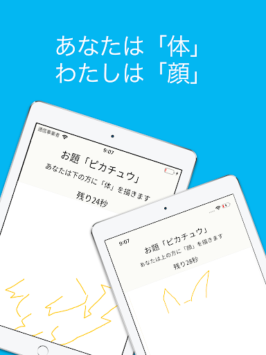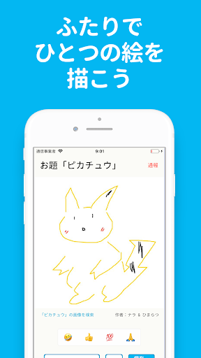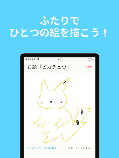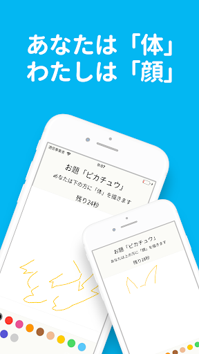 出されたお題に対して、2人でひとつの絵を描くお絵かきアプリです。