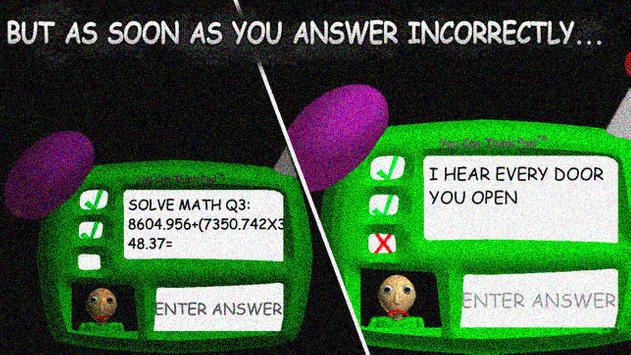 In this education and learning simulator, you will play as a student in new Baldi’s basics school, who have to stroll through corridors and search for notes. These notes will give you slew math quests, which you will have to complete. Just look at the screen of the calculator and write the answer in your notebook. Many screamers also await you in this education and learn simulator. New Baldi’s basics school has slew horrors inside and the only way to escape this horrible place is to solve every mathematical equation in the game. Remember everything you had learned at school and escape this unpleasant place. Share this game with your friends and play together. Solving mathematical equations is faster when you are not alone. If you cannot solve the task, which calculator gave you, you can always ask your friends to help you.