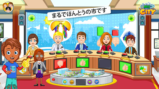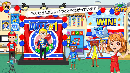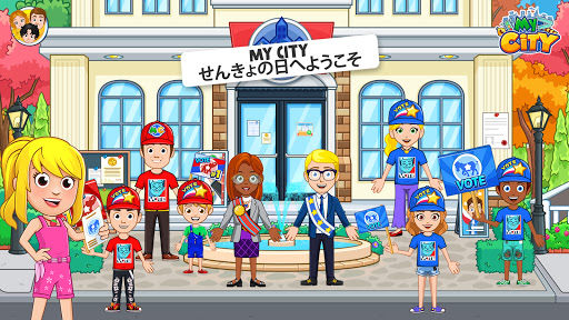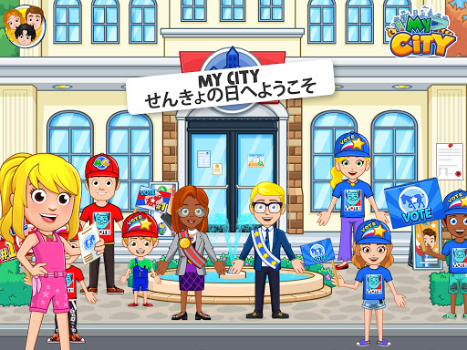My Cityのせんきょの日はみんながワクワクしています。だれがかって、だれがまけるでしょうか?あなただけがけっていできます。みんなMy Cityのあたらしい市長さんになりたがっています。だれにとうひょうしますか?市長さんのオフィスにすわってしやくしょに行き、すべてのへやをたんけんし、せんきょポスターをはり、市をたすけましょう。あたらしいMy Cityゲームではすべてがかのうです。