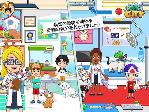 My City:動物保護施設は楽しいアクティビティ、新しい場所、無限の数のごっこ遊びを提供します。新しい探検できる場所8か所あり、ライオンとトラ、蛇とウサギ、カエルとアライグマなど50匹以上の新しいペットを他のMy City ゲームに連れて行くことができます。