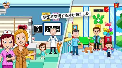 誰もがペットが大好きです。私の町:遊ぶことができるペットはたくさんいます。ペットの世話をしながら素晴らしい冒険を体験してください。ペットを動物保護施設から連れて行き、獣医に連れて行って健康を維持してください。アニマルスパでペットを掃除し、ペットファッションストアでドレスアップしてください。アニマルパークに行くと、素敵なペットを自慢できます。