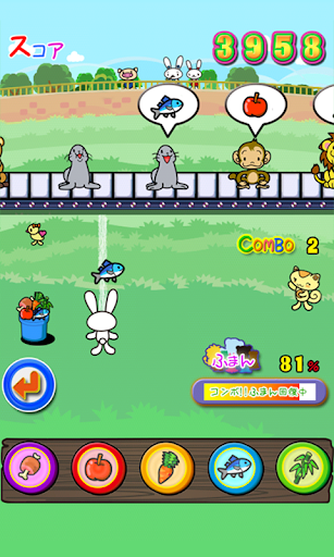 キチンとエサをあげられるかな? 動物園に住むハラペコな動物達が求めるエサを正しく与えてゆくアクションゲーム。 動物達はベルトコンベアに乗って現れます。 エサを与えなかったり、間違ったエサを与えると動物たちの不満がグングン溜まってしまいます。 不満度が100%越えて閉園に・・・なんて事にならないように清く、正しく、美しく!エサをあげましょう。