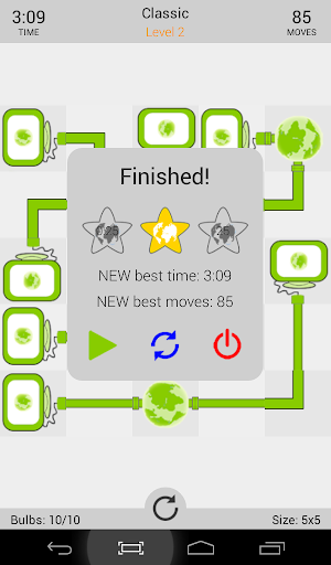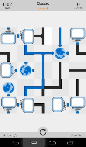 Control is easy, you just touch an item and it will turn. You end a level if you connect all computers. To complete a level, you can get three stars. One to complete the level, one for mounting in time and one for mounting in the given amount of movements.