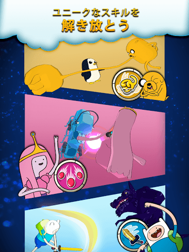 今までにない豊富な『アドベンチャー・タイム』のキャラクターラインナップ! 200体以上の多様なスキルとオーラを備えたヒーローと悪役でチームを編成しよう。