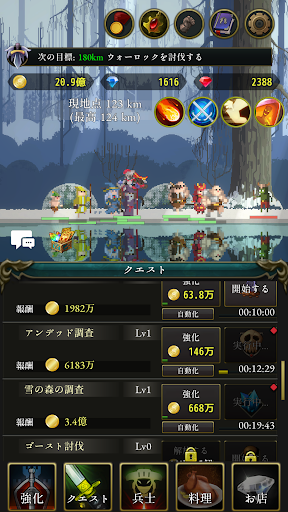 クエストやモンスター討伐でお金を稼ぎ、レベル上げすることであなたの部隊を強化しよう。