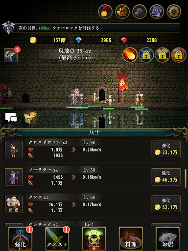 ・クエストを強化して、なにもせずにコインを集める放置要素