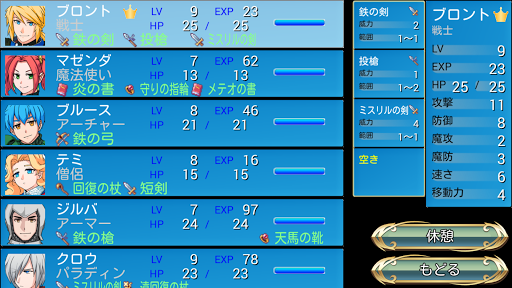 ・キャラは移動、攻撃、回復ができます。攻撃された側が反撃できる場合もあります