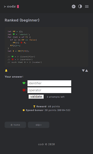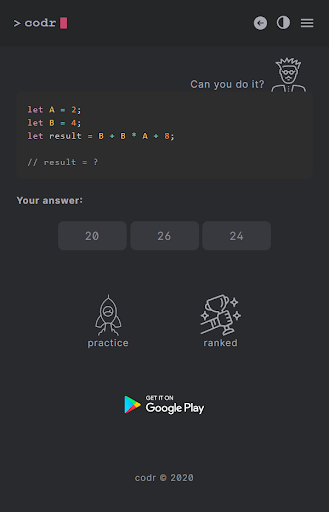 Can you solve these code puzzles? For everyone who dares to think outside the box. And if you like a competitions, climb the leaderboard in ranked and become the best.