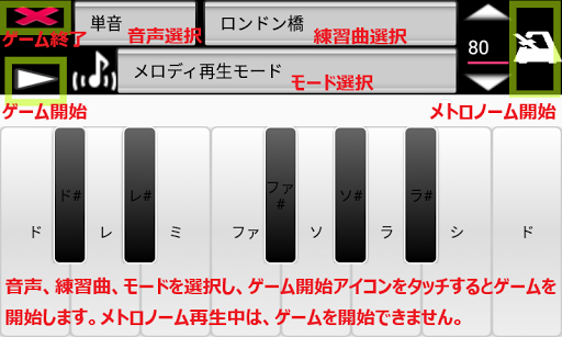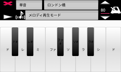 1オクターブ内(ドレミファソラシド)でピアノの練習ができます。