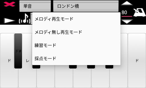 メロディ再生モードは、設定した音で練習曲を自動再生するモードです。