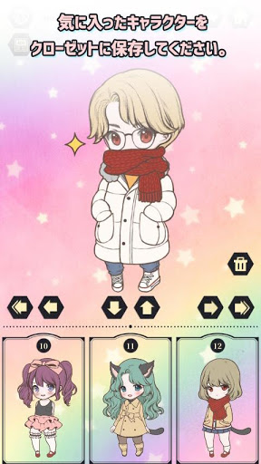 1. 多彩な衣装とアクセサリーを使ってキャラクターをきせかえてください。